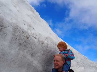 9:00、バスでグルントへ。そこから4人乗りのヨーロッパ最長ロープウェイで30分。ぐんぐん迫ってくる山並み、下を見るとマーモットが穴の中から顔を出したりじゃれあったりしているのが見える。