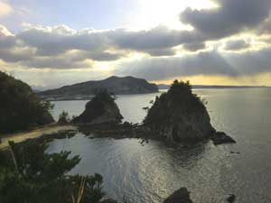 高さ40メートル乳白色の黒曜石が露天で120メートルも続いている国の天然記念物に指定されている。さすがに瀬戸内国立公園のことだけはあると納得できる美しい海岸線。