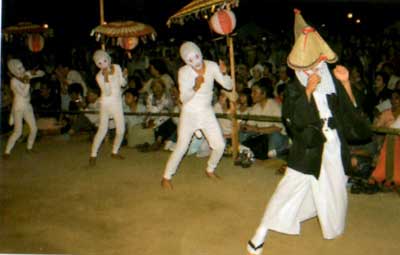 テレビの特集番組で姫島盆踊りが紹介されていたが、その時のキツネに扮した子供たちの化粧した顔と面白い仕草、盆踊りの明かりの中に浮かぶ島民の真剣な表情が妙に頭に残っていた。
