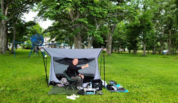 林の中にテントが点在してそれぞれ静かにキャンプを楽しんでいる。